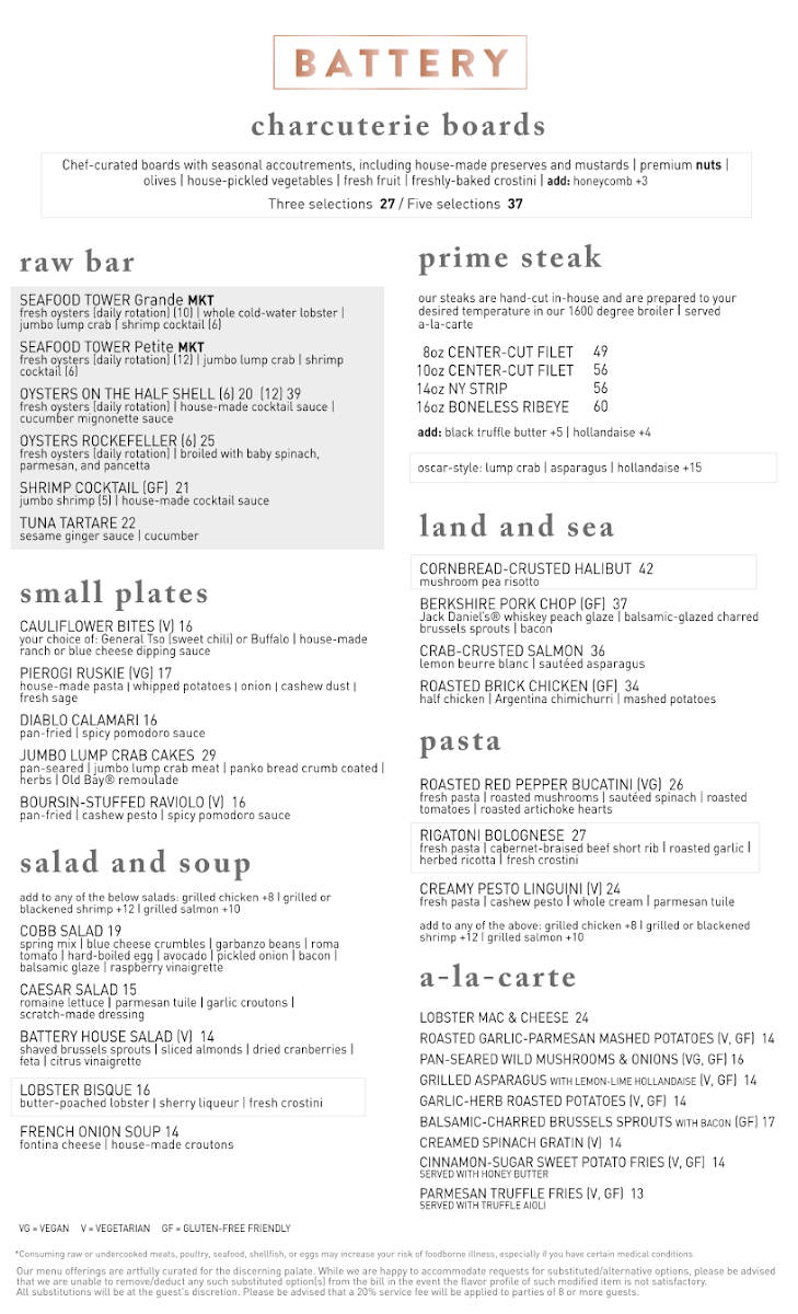 Battery's offerings are a testament to their commitment to quality. Highlights include the rich Oysters Rockefeller, the indulgent Battery Burger crafted from ground short-rib and brisket, and the perfectly cooked 16oz ribeye. Each dish showcases the skill of their scratch kitchen, ensuring that every bite bursts with flavor.